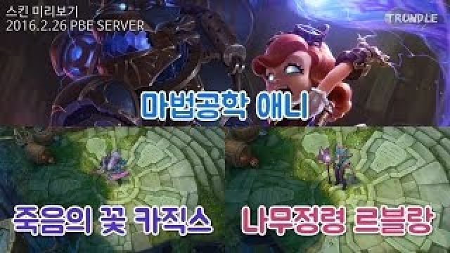 스킨 미리보기 - 나무정령 르블랑, 죽음의 꽃 카직스, 마법공학 애니